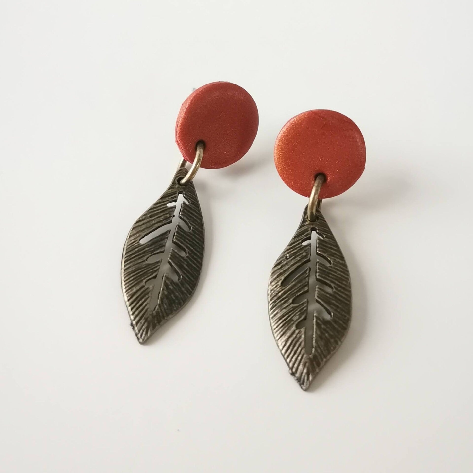 oorstekers in terracotta met bronskleurig blaadje